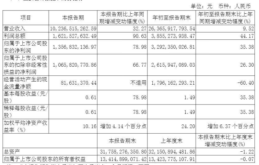 第三季度,宇通客车归母净利润13.56亿元,同比增长78.98%。